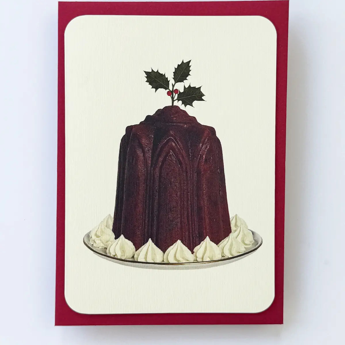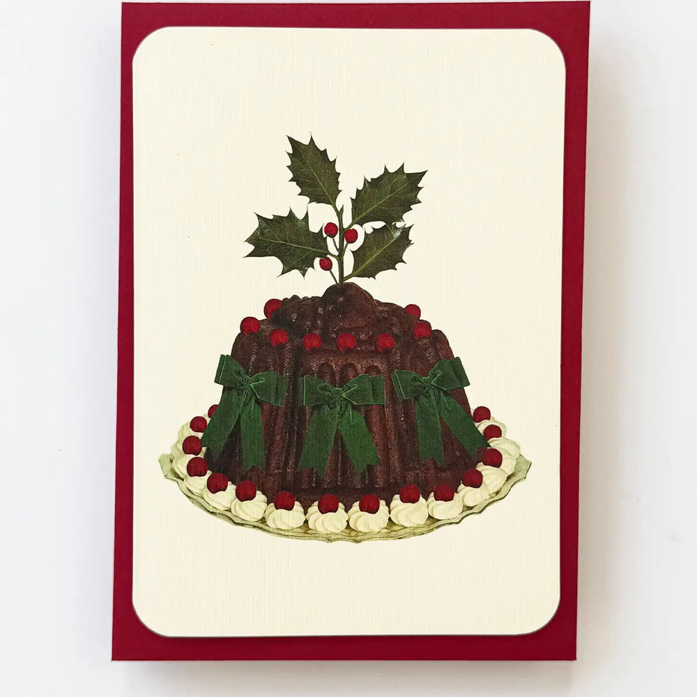 Christmas Plum Pudding Holly Greeting Card