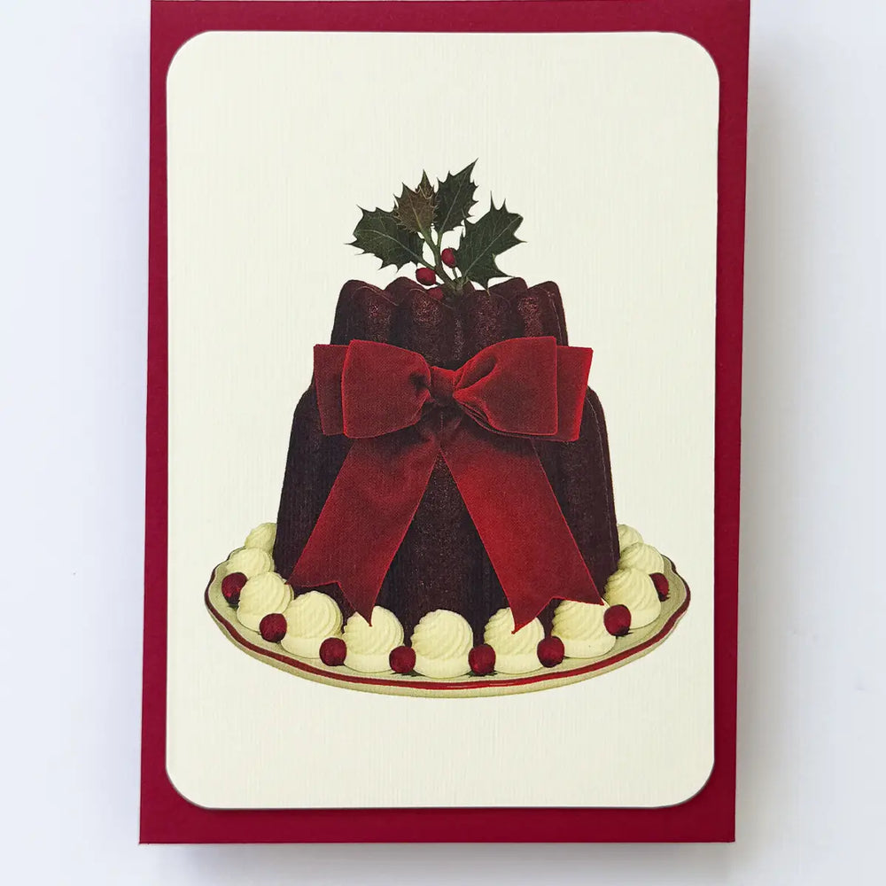 Christmas Plum Pudding Red Velvet Bow Greeting Card